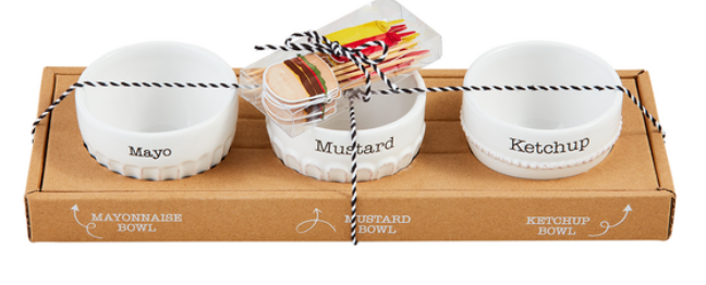 Set de cerámica para mayonesa, salsa de tomate y mostaza.